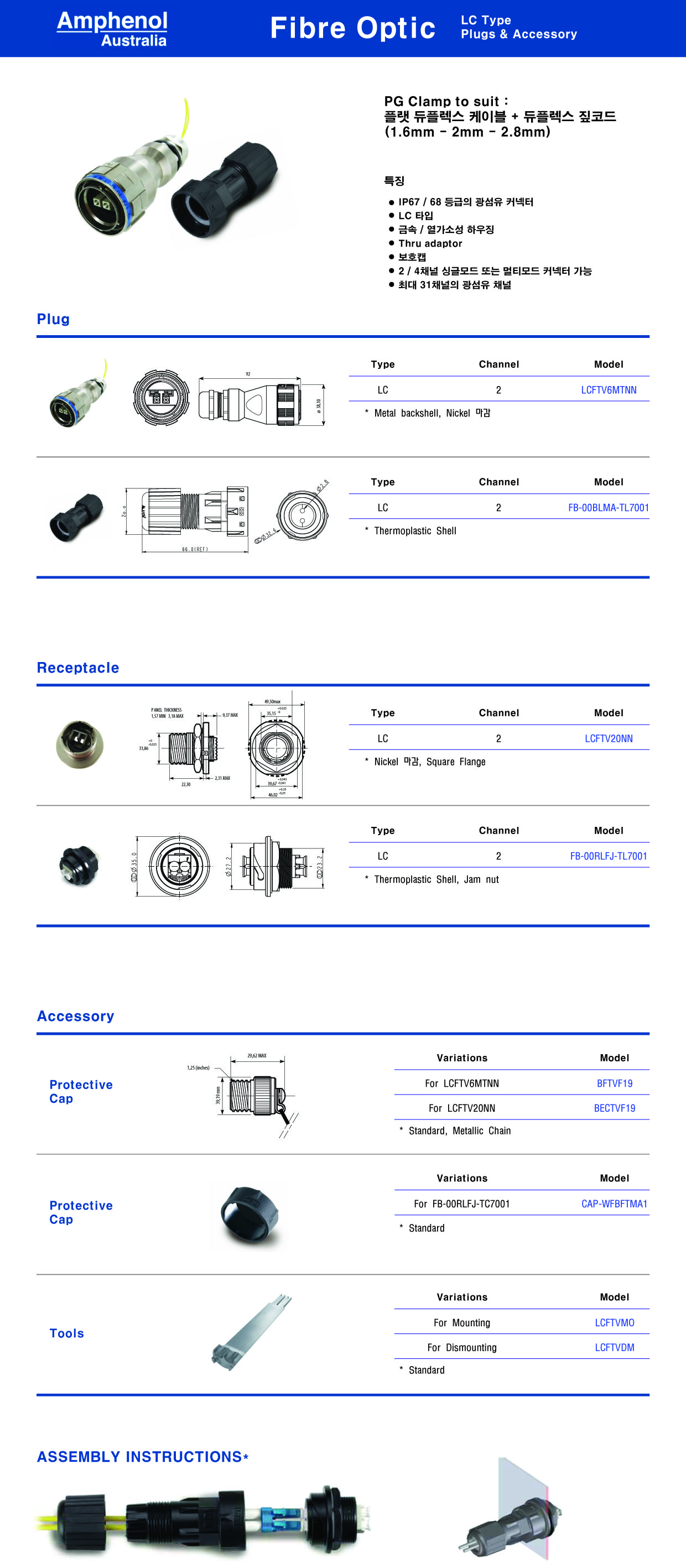 LC, 2 or 4ch, 싱글 또는 멀티 모드 광커넥터, Receptacle, IP68, 니켈